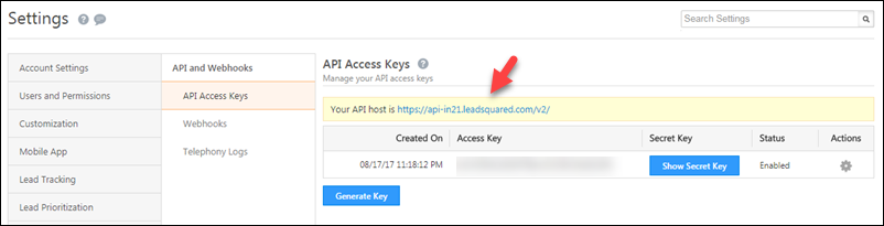 Alternatively, you can find your LeadSquared API host, using the User Authentication API.